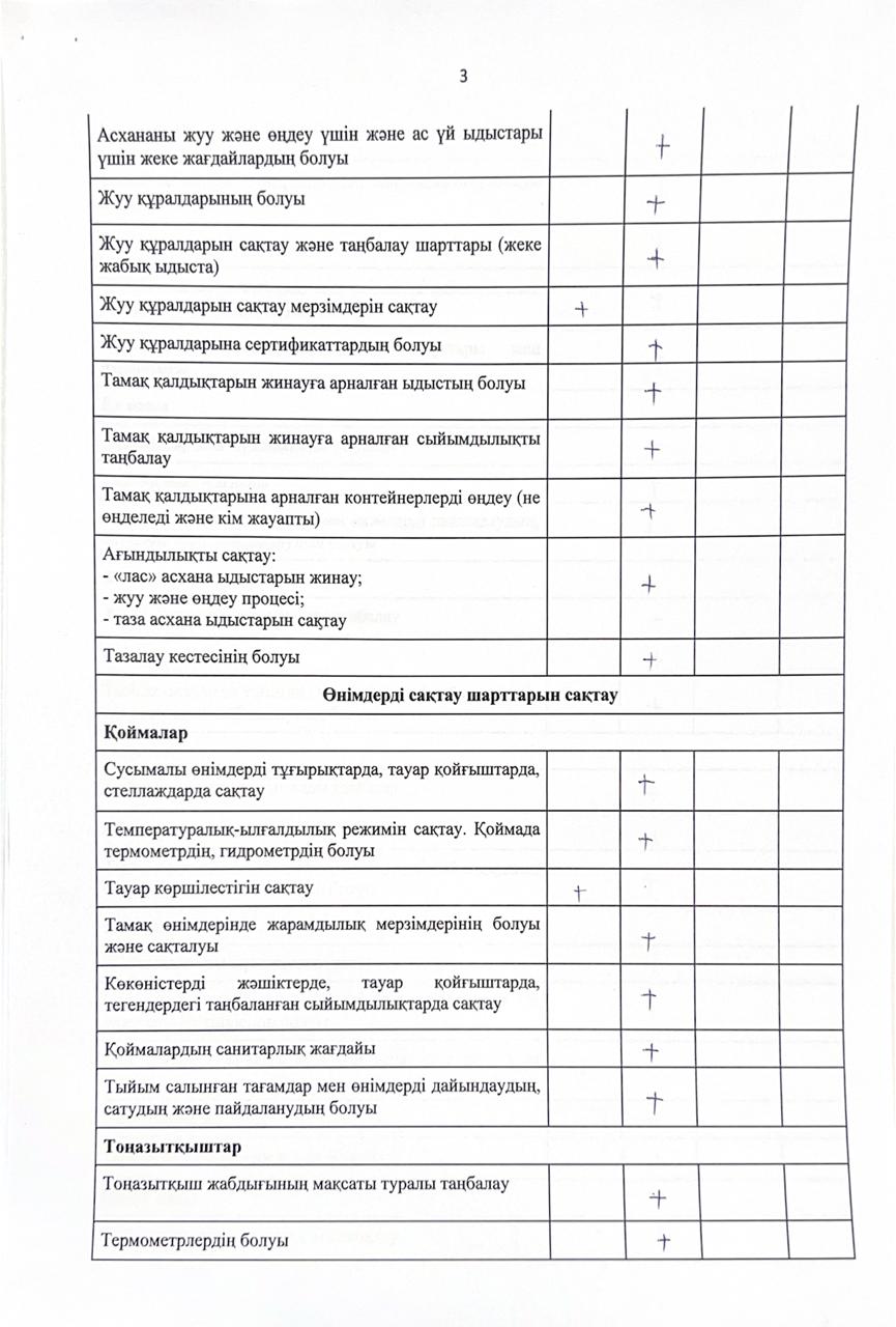 Бракеражды комиссия қызметінің 3-тоқсан бойынша хаттамасы