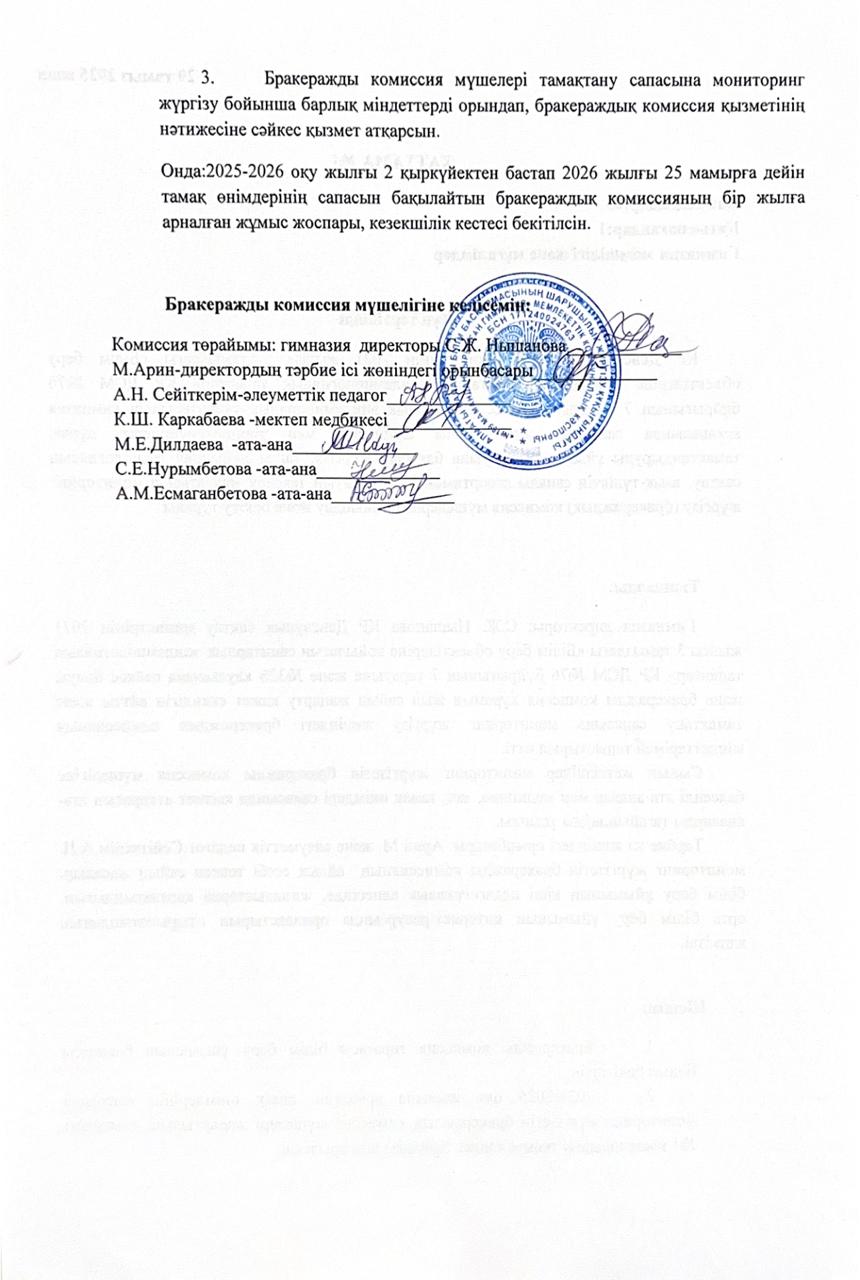 2024-2025 оқу жылына арналған бракеражды комиссияны құру туралы бұйрық