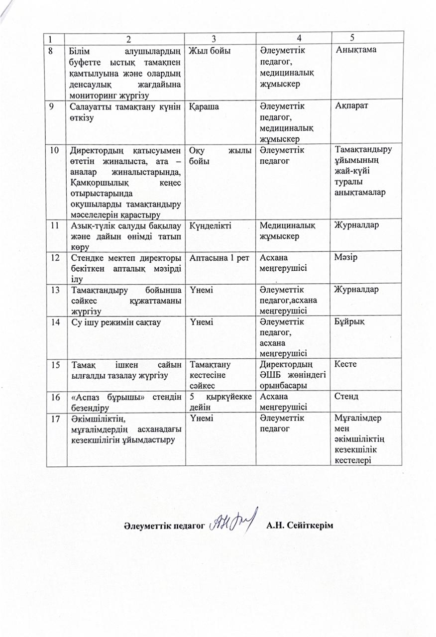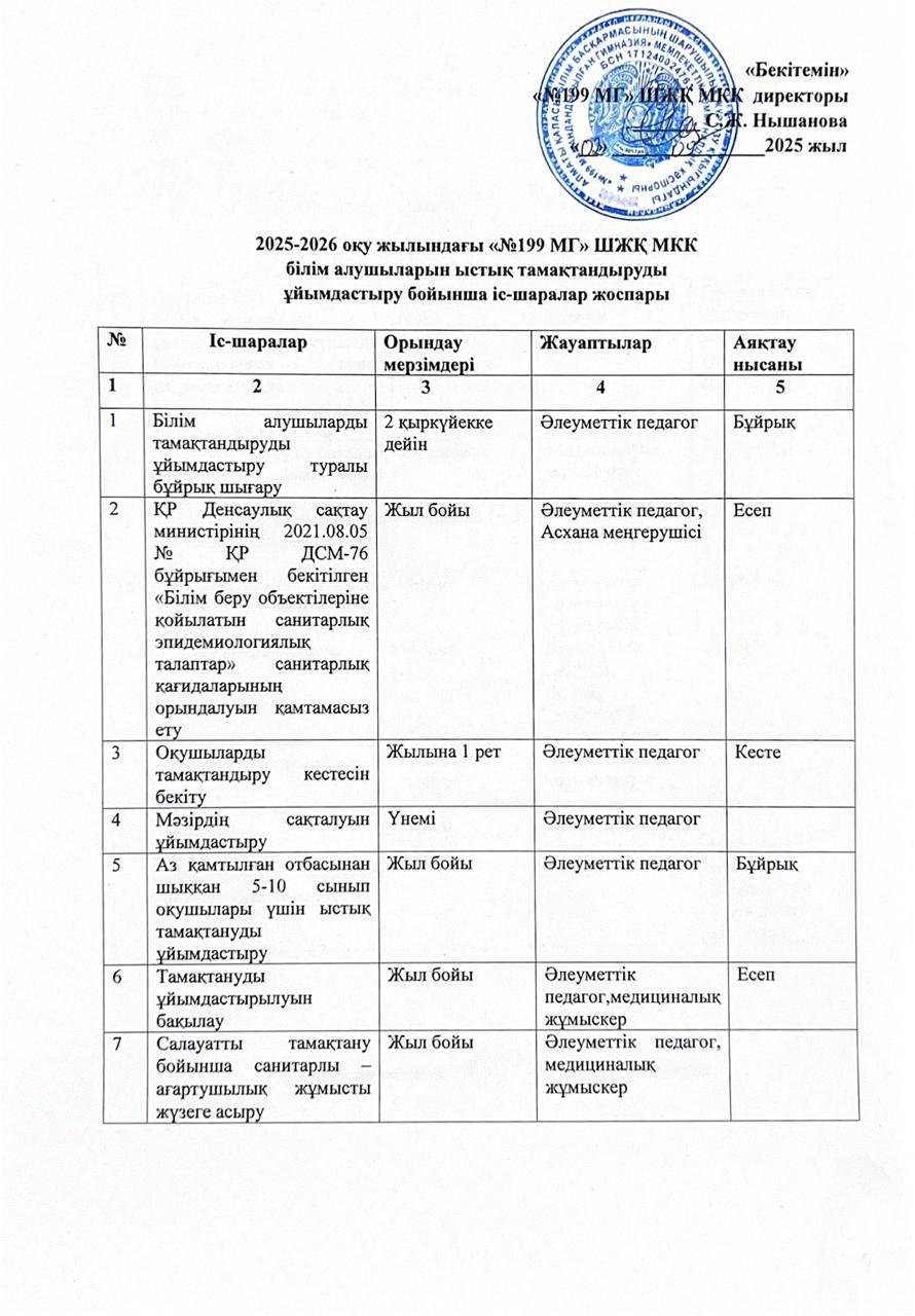 » Ыстық тамақты ұйымдастыру бойынша іс-шаралар жоспары