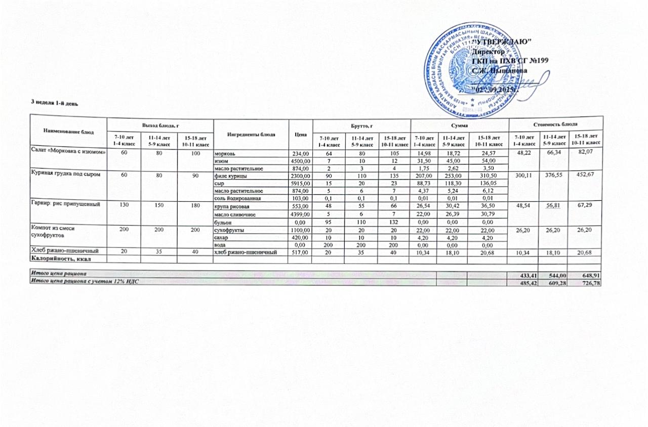 2025-2026 оқу жылына арналған тамақтану кестесі
